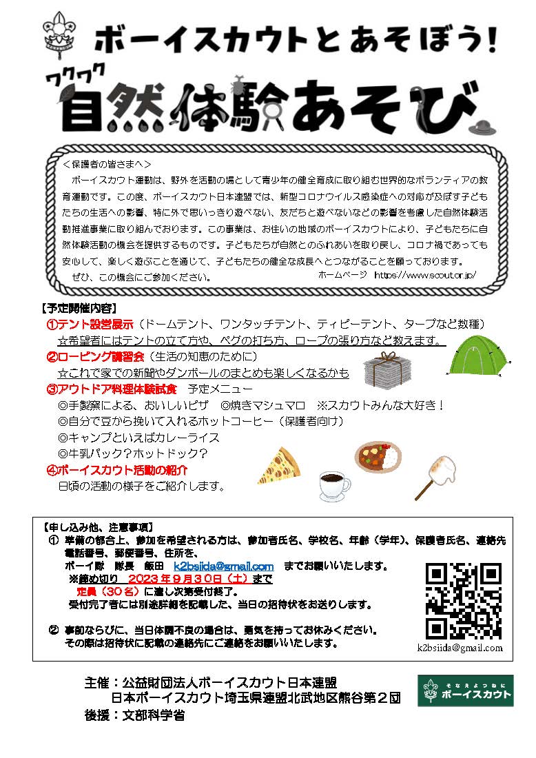 【お知らせ】2023.08.05 ワクワク体験募集中