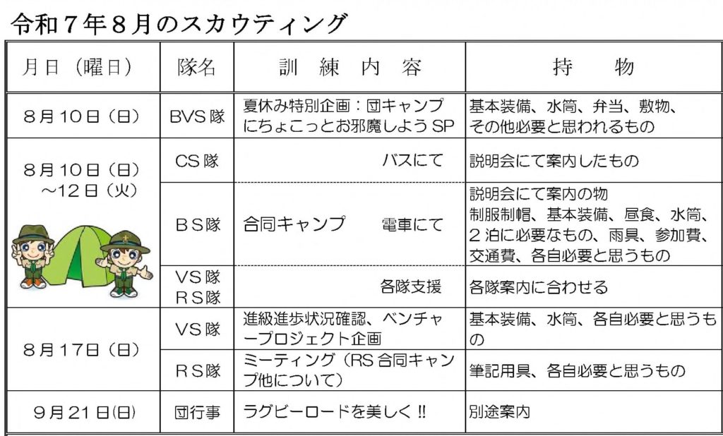 【活動予定】2025.08 活動予定