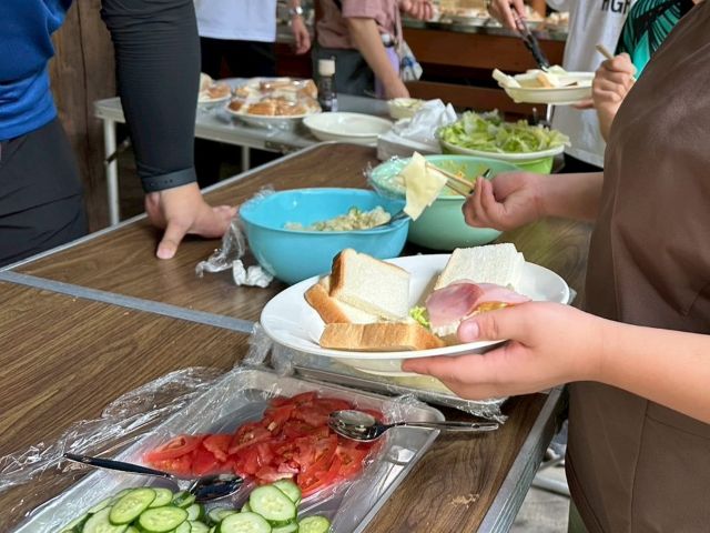 ゲットした食材でサンドイッチを作ります