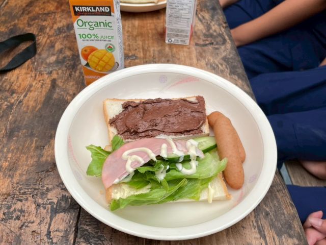 2日目お昼はハイキングでゲットした食材を使ってサンドイッチ作り。